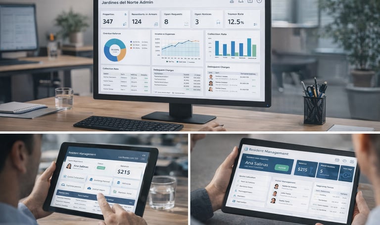 Controla cartera, cuotas, residentes y reportes en tiempo real, eliminando el trabajo manual y los errores de gestión.